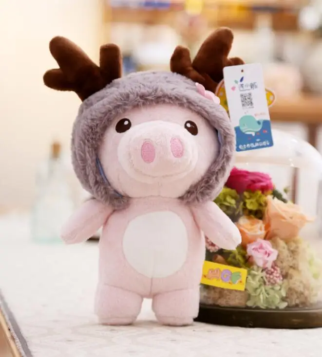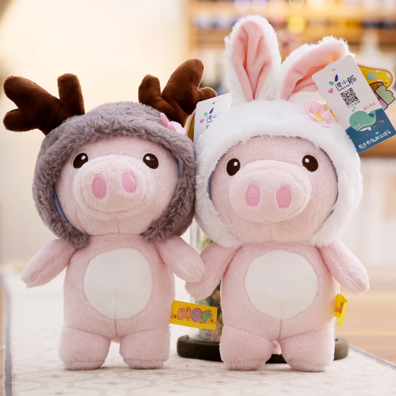 Candice guo! Super cute plush toy lovely cartoon pig piggy turn to cattle rabbit elk frog mouse soft small doll birthday gift 1p : Click here